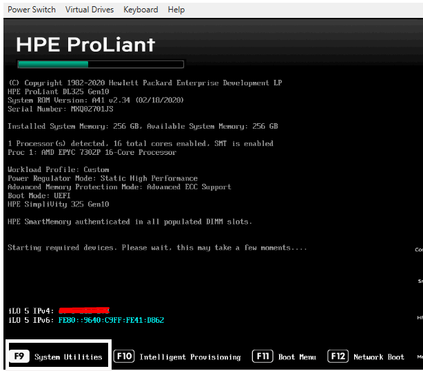 Sunucuyu yeniden başlatıyoruz ve F9 tuşu ile System Utilities menüsüne geçiyoruz.