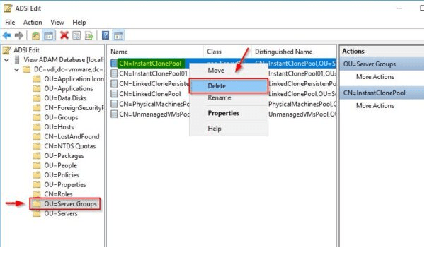OU=Server Groups’a tıkladığımızda bütün poolar listelenir. Burda Deleting kısmında kalan pool’a sa tıklayarak Delete diyoruz.
