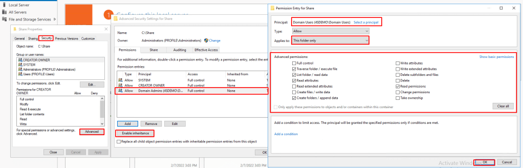 FSLogix’i yüklemeden önce profil datalarımızı tutacağı VHD Dosyalar için bir paylaşım alanına ihtiyacımız var. Bu paylaşılmış alan aşağıdaki adımlar izlenerek oluşturulabilir.