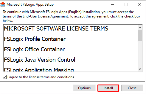 FSLogixAppsSetup yükleme dosyasını çalıştırıyoruz.
