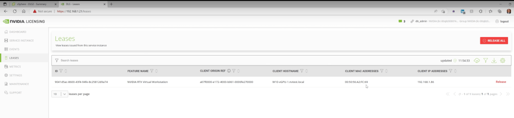 Appliance üzerinde Leases kısmında master image’in lisans aldığını görebilirsiniz.
