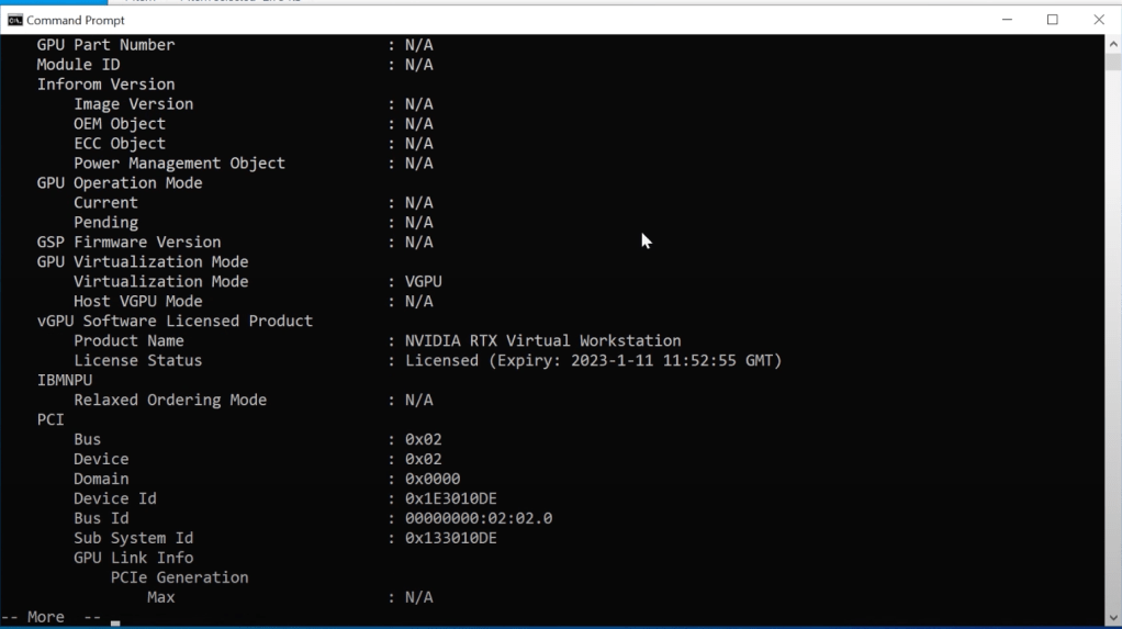 Dizine geçtikten sonra nvidia-smi -q | more komutunu çalıştırıyoruz.