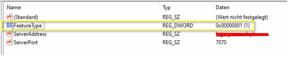 Eğer yeni kurulum yaptıysanız burda sadece FeatureType seçeneğini göreceksiniz ve bu REG_DWORD değerin 1 olması gerekmektedir.