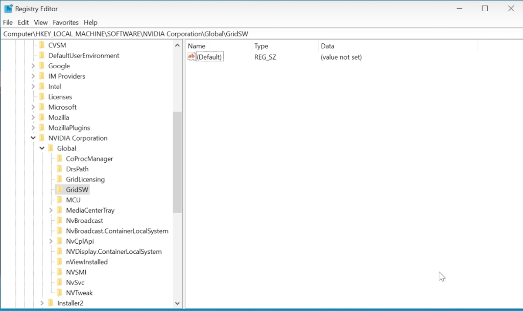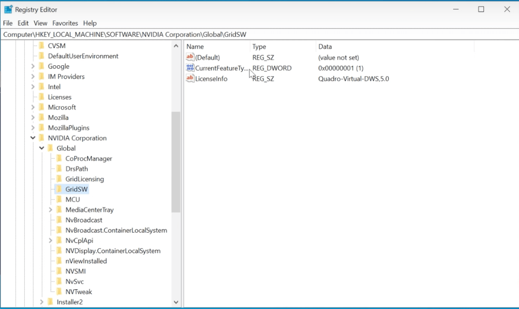 HKEY_LOCAL_MACHINE\SOFTWARE\NVIDIA Corporation\Global\GridSW