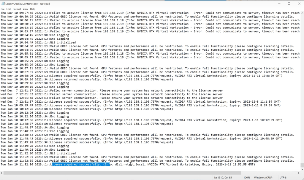 Daha sonrasında NVIDIA Display Container servisini tekrar başlatıyoruz.Master image’in başarılı bir şekilde lisans aldığını aşağıdaki dizin içerisindeki log dosyasından kontrol edebilirsiniz.