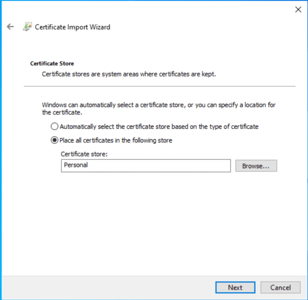 Sertifikanın Import edileceği store’u Personal olarak belirliyoruz.
