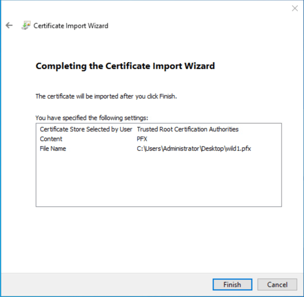 Finish diyerek SSL Sertifika import işlemini tamamlıyoruz.