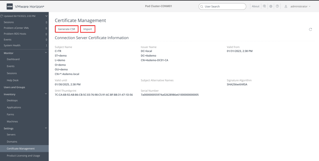 Bu yazımızda Connection Server üzerinde bulunan self-signed SSL sertifikaların nasıl değiştirileceğinden bahsedeceğim.