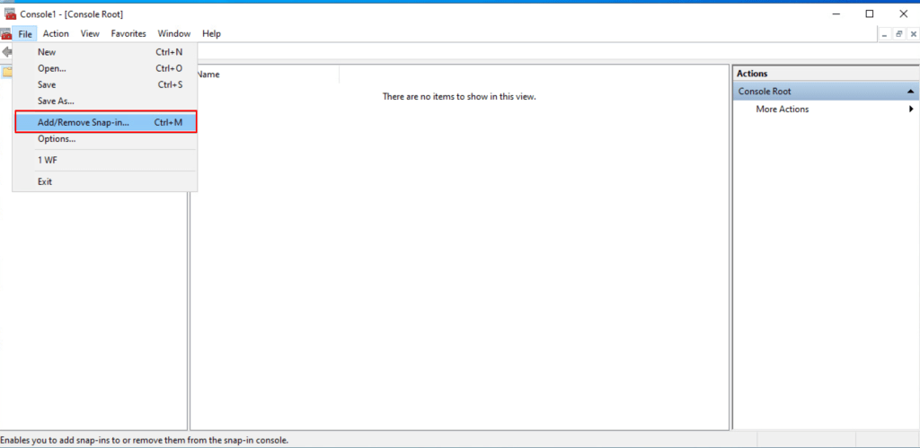 File > Add/Remove Snap-in seçeneğini seçiyoruz.