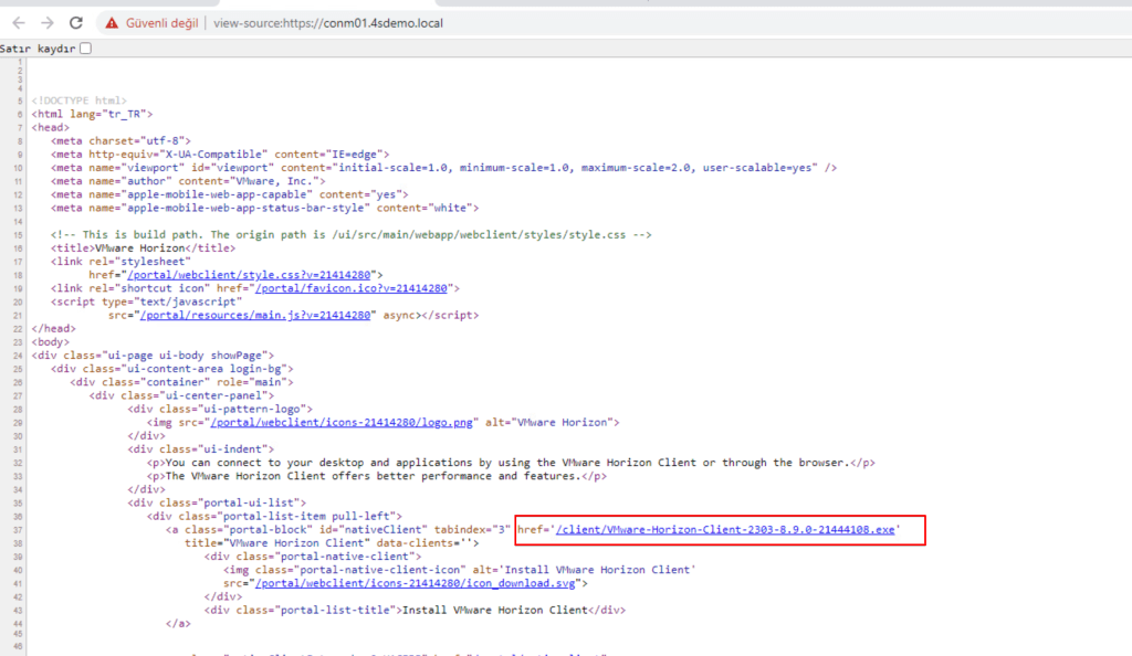 Görüldüğü üzere Horizon Client linki bizim ayarladığımız şekilde görülmektedir.