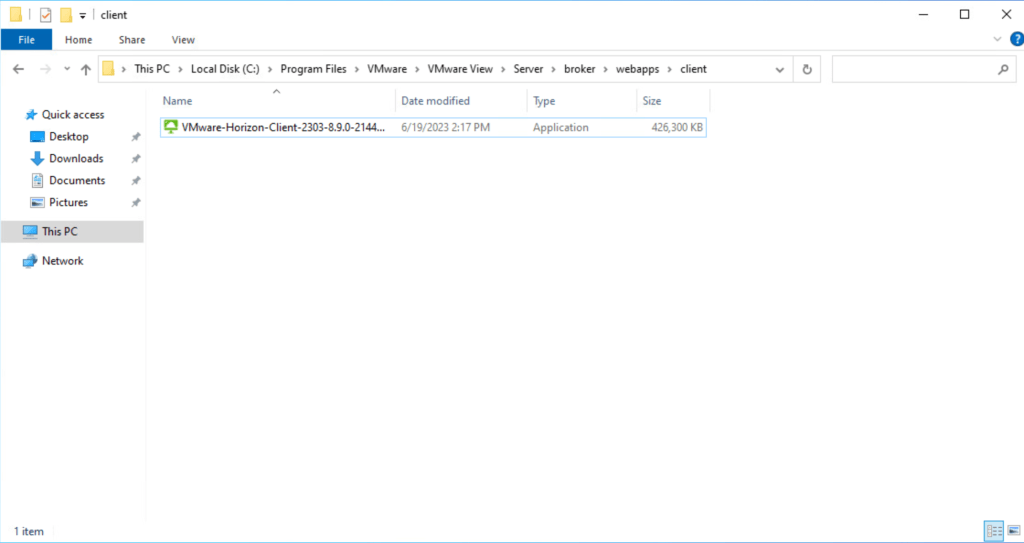 Daha önce indirmiş olduğumuz Horizon Client’ı bu dizinin içerisine atıyoruz.