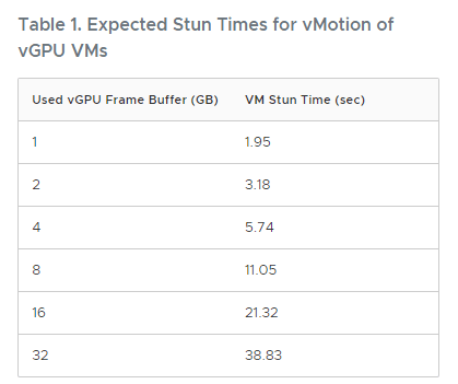 Enable edildikten sonra vGPU ya sahip sanal makine taşınabilir ancak taşınma işlemi tamamlandıktan sonra kullanıcıların vGPU tarafında kullandıkları profile göre donma yaşayacaklardır. Bu donma süreleri profile Q büyüklüğüne göre doğru oranda artmaktadır.
