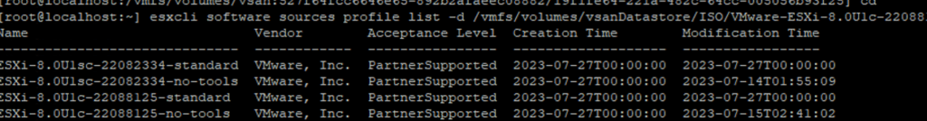 esxcli software sources profile list -d /vmfs/volumes/…/PatchName