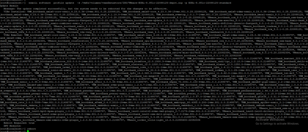 Yukarıda bahsetmiş olduğum komutu kendi profile ve datastore yapınıza göre uyarlayarak giriyoruz ve host patch işlemi başlamış oluyor.