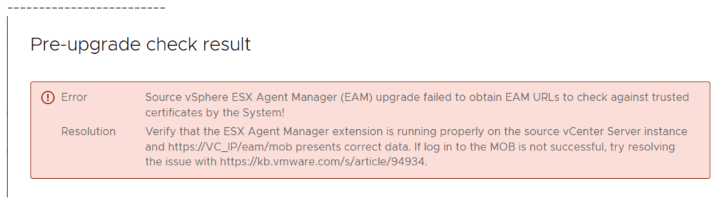 8.0u2 vCenter’ı 8.0u3 upgrade edilme esnasında aşağıdaki gibi bir hata ile karşılaşabilirsiniz.